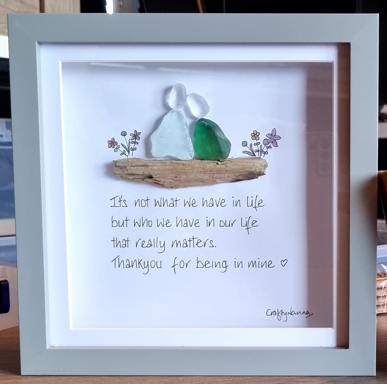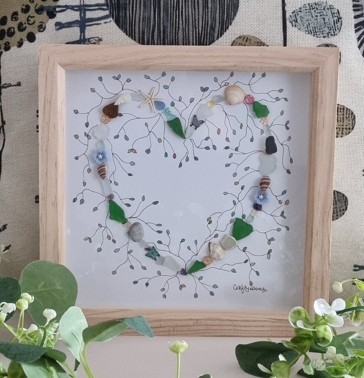 Welcome to the Sea Glass Art Showcase at CraftyNanna, where each piece tells a unique story. We invite you to explore our collection of handmade, bespoke sea glass art, crafted with handpicked natural materials. Our art aims to evoke feelings of interest and happiness, reflecting the individual, authentic, and unique nature of each creation.